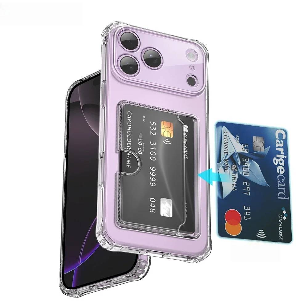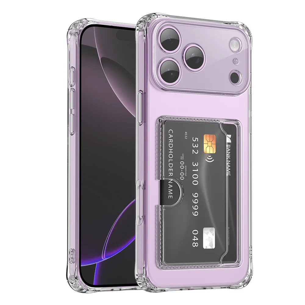 Silicone Clear Case for iPhone 17 Pro Max 17Air 17pro 16 16E 15 14 13 12 mini 11 Pro Max Back Card Pocket Cover